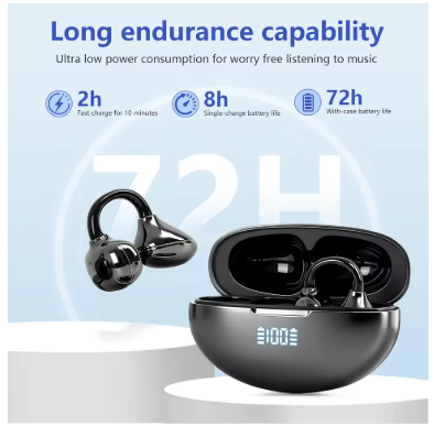 The UYUXIO BT 5.4 Clip-On Wireless Earbuds are designed for users who prefer open-ear listening while working out. Instead of blocking the ear canal, these earbuds sit comfortably on the outer ear using air-conduction technology.