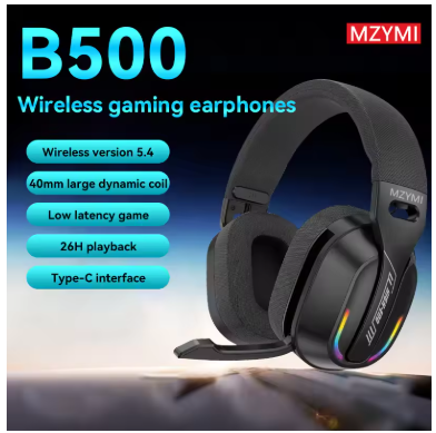 4. MZYDM B500 Wireless Bluetooth 5.4 Gaming Headset – RGB & Low Latency.